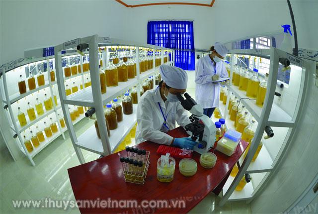 Phòng nuôi cấy tảo hiện đại với hệ thống sục khí, điện...