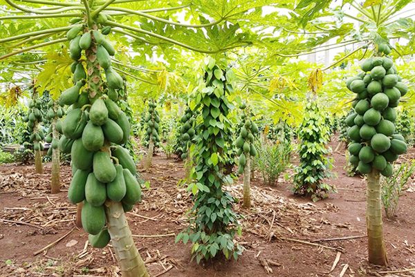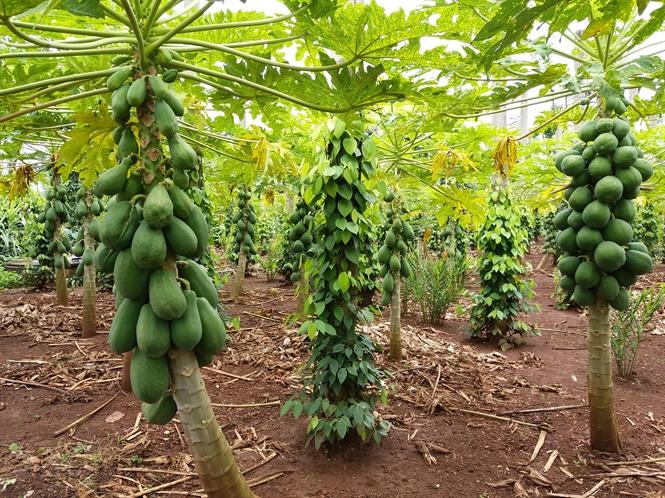 Trồng xen canh đu đủ và tiêu vừa tận dụng được khoảng đất trống lúc cây tiêu còn nhỏ, lại vừa có nguồn thu nhập để đầu tư cây tiêu phát triển |
