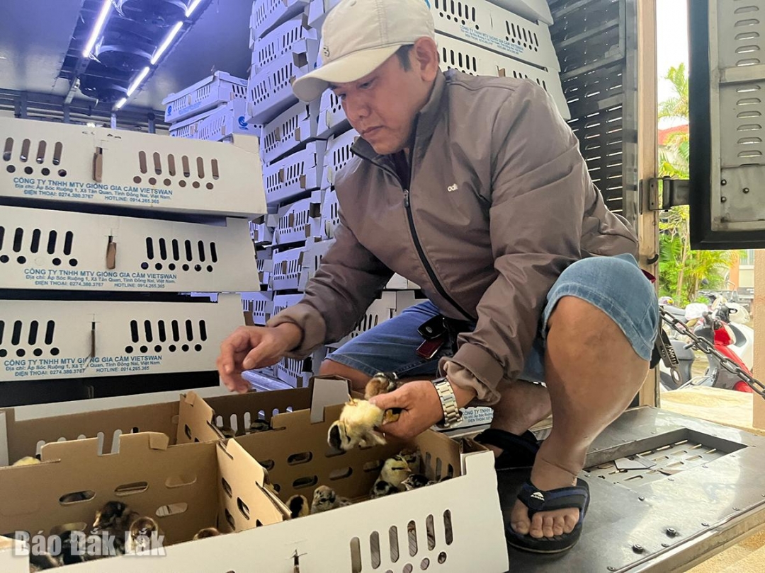 | Kiểm tra chất lượng gà giống trước khi phát cho bà con. |