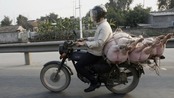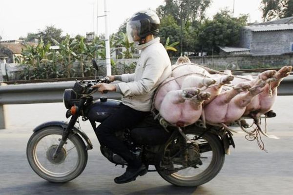Thồ heo sống đi bán (Ảnh: HOANG ĐINH NAM/AFP/GETTY)
