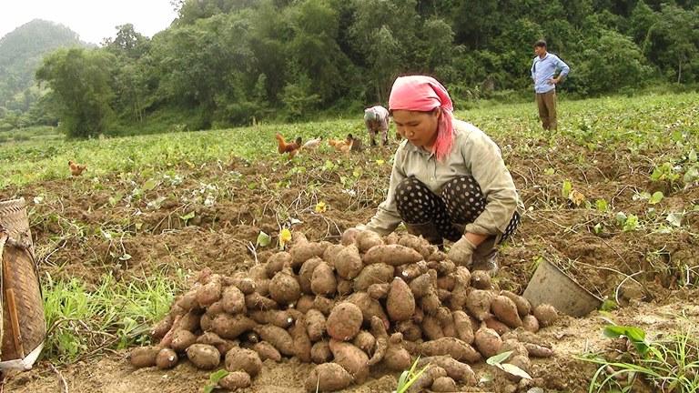 Bà con xóm Khiềng, xã Phú Cường phấn khởi khi khoai năm nay được mùa, được giá