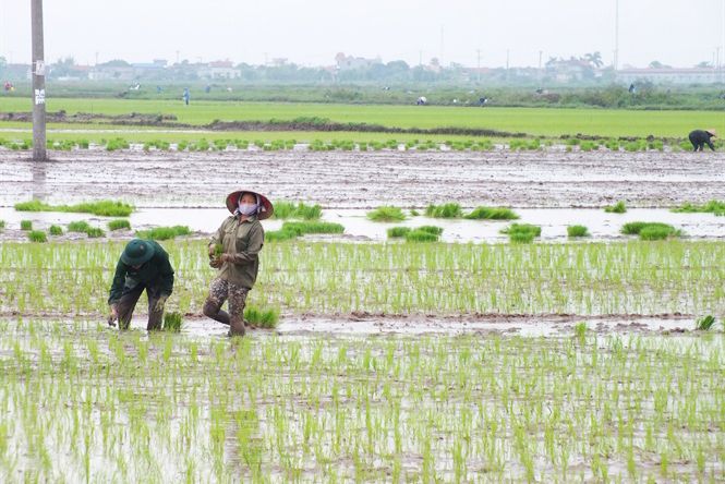 Đến ngày 5/8, nhiều diện tích lúa vụ mùa tại Nam Định vẫn đang tiếp tục phải gieo cấy lại