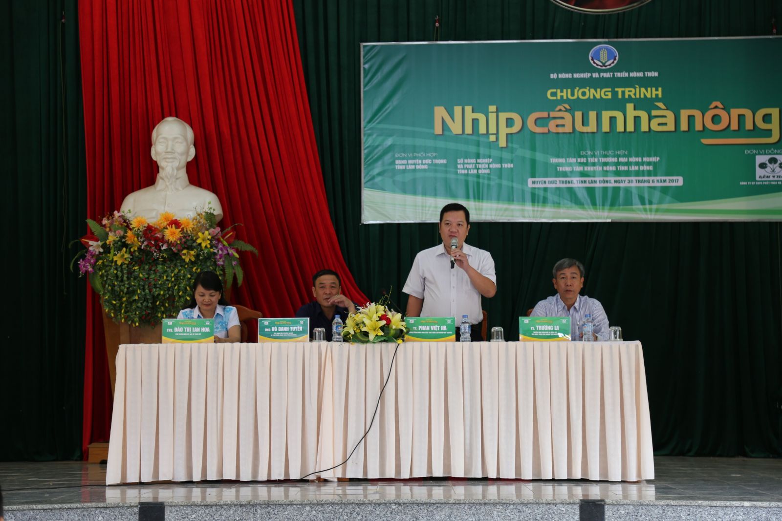 Tham dự chương trình lần này tại huyện Đức Trọng có sự góp mặt của ông Hoàng Văn Dự - Phó Giám đốc Trung tâm Xúc tiến Thương mại nông nghiệp, ông Võ Danh Tuyên – Phó Giám đốc Sở NN&PTNT Lâm Đồng, ông Trương Văn Tùng – Phó Chủ tịch Hội Nông dân tỉnh Lâm Đồng, đại diện lãnh đạo các đơn vị chuyên môn trực thuộc Sở NN&PTNT và đại diện lãnh đạo phòng Nông nghiệp, Hội Nông dân, Trung tâm Nông nghiệp huyện Đức Trọng, Đơn Dương, Lâm Hà. Đặc biệt là hơn 200 đại biểu là nông dân, khuyến nông viên cơ sở, các Hợp tác xã, chủ trang trại… của 03 huyện Đức Trọng, Đơn Dương và Lâm Hà.