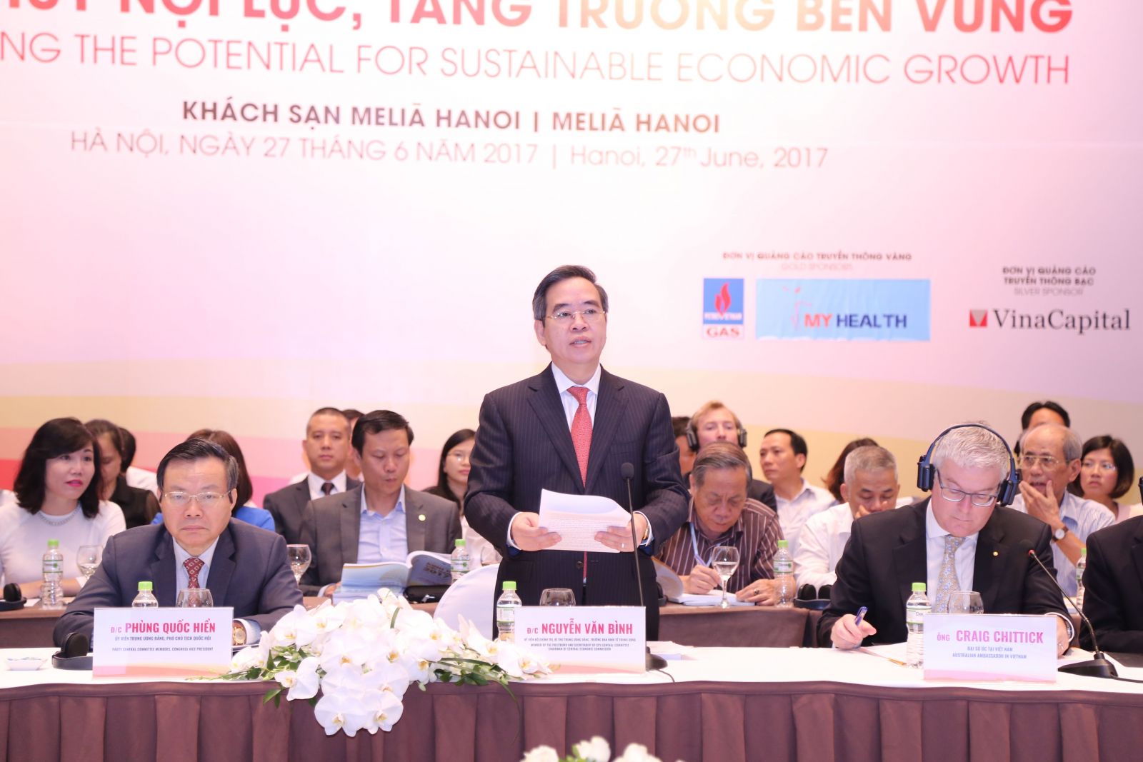 Phát biểu đề dẫn Hội thảo, Trưởng ban Kinh tế Trung ương Nguyễn Văn Bình cho biết, Việt Nam đã có những bước tiến vượt bậc trong phát triển kinh tế kể từ Đổi mới năm 1986. Tốc độ tăng trưởng kinh tế trung bình khoảng 6,4%/năm từ năm 2000 đến nay và tỷ lệ đói nghèo giảm xuống dưới 3% so với khoảng 50% đầu những năm 1990. Từ năm 2008, Việt Nam đã vượt qua mốc GDP bình quân đầu người 1.000 USD và bắt đầu bước vào ngưỡng có thu nhập trung bình.
