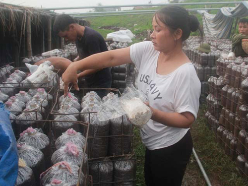 Chị Huyền tâm sự: “Sau gần 1 năm vừa buôn nấm, vừa đến các cơ sở lân la học hỏi, năm 2008, tôi quyết định dành cả khu vườn nhà để trồng nấm”. Khởi đầu chưa có vốn, kinh nghiệm còn non, chị chỉ trồng 5.000, rồi tăng lên 10.000, 20.000 bịch phôi/lứa. Sau 2 năm cần mẫn, vừa làm vừa học, tích lũy được ít vốn, năm 2010 gia đình chị xin thầu lại của UBND xã Song Phượng 2 mẫu ruộng bỏ hoang ven đê mở rộng quy mô sản xuất.