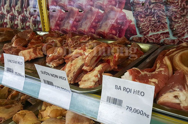 Tại siêu thị Vinmart Nguyễn Duy Trinh - quận 2, giá sườn non: 160.000 đồng/kg, ba rọi: 86.000 đồng/kg. Chị Võ Thị Thu Trâm, nhân viên bán hàng tại đây cho biết, nguồn thịt và giá bán ra ổn định.