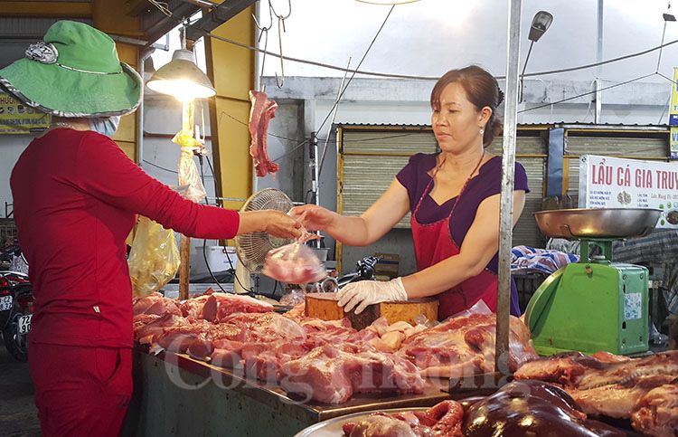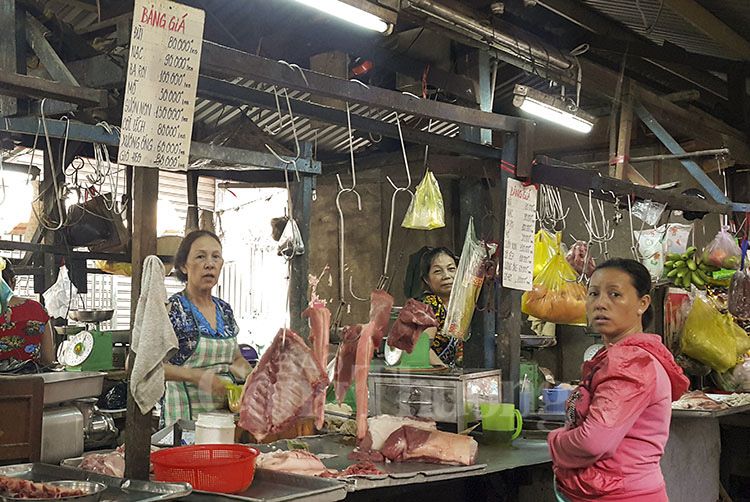 Tại chợ Bình Trưng, quận 2, các chủ quầy bán thịt heo cho biết: giá ba rọi 83.000 đồng/kg, sườn non 130.000 đồng/kg. Giá bán không tăng, không giảm so với mấy ngày trước. Tình hình bán ra ổn định, không có biến động. Theo các chủ quầy tại đây, nguồn thịt họ lấy từ các lò mổ ở quận 9 nên không ảnh hưởng về số lượng cũng như chất lượng thịt heo.