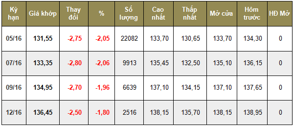 Giá cà phê arabica trên sàn ICE kỳ hạn 03/16 giảm 2,75 cent/lb, hay -2,05%xuống còn 131,55 cent/lb, các kỳ hạn khác cũng giảm 2,50 - 2,80 cent/lb. Sáng nay, giá cà phê nhân xô tại Tây Nguyên giảm 200 ngàn đồng/tấn, xuống còn 32,8 - 32,7 triệu đồng/ tấn.