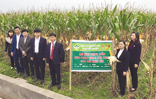 Mô hình trình diễn bón phân NPK Lâm Thao khép kín trên cây ngô lai tại Khu Thợ, Khu 11, 12, 13 xã Vĩnh Lại, huyện Lâm Thao. Ảnh: T.Đ