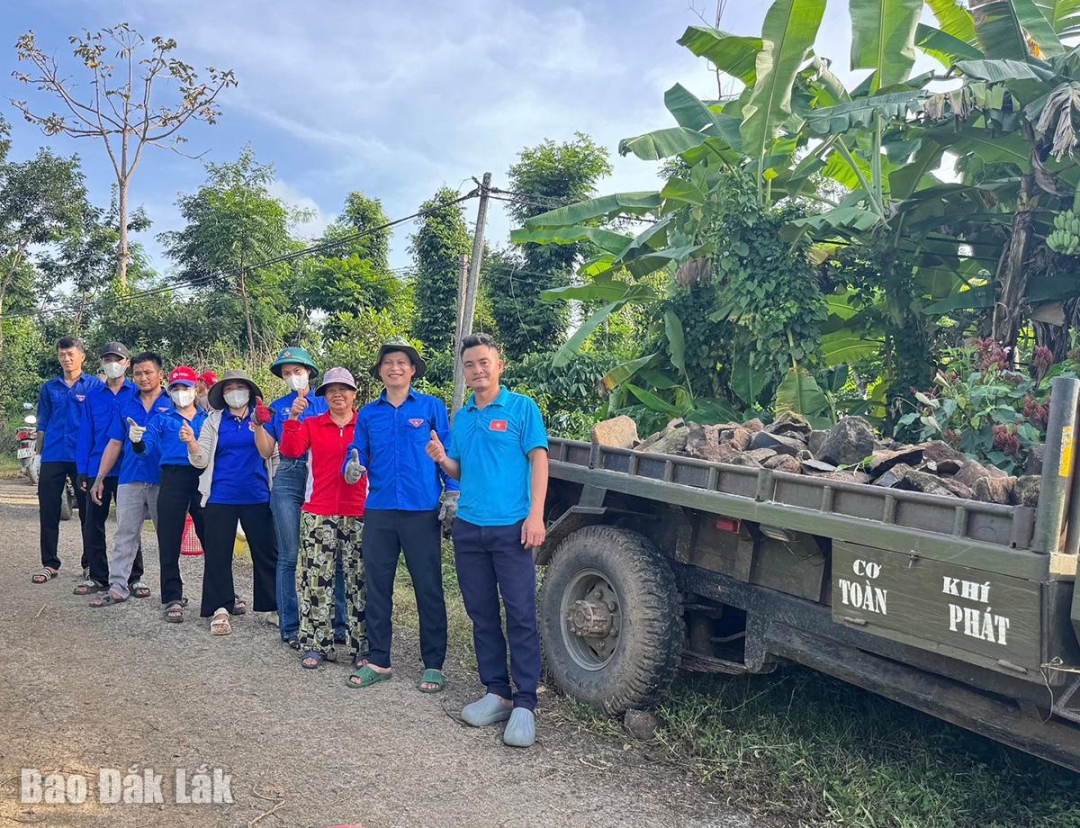 | Tuổi trẻ Ea Wer tham gia giúp dân, lan tỏa hành động bảo vệ môi trường. |