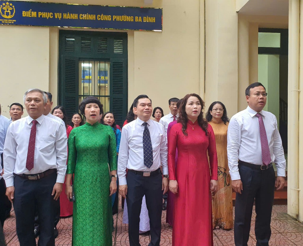 | Buổi chào cờ đầu tiên của cán bộ, công chức phường Ba Đình mới |