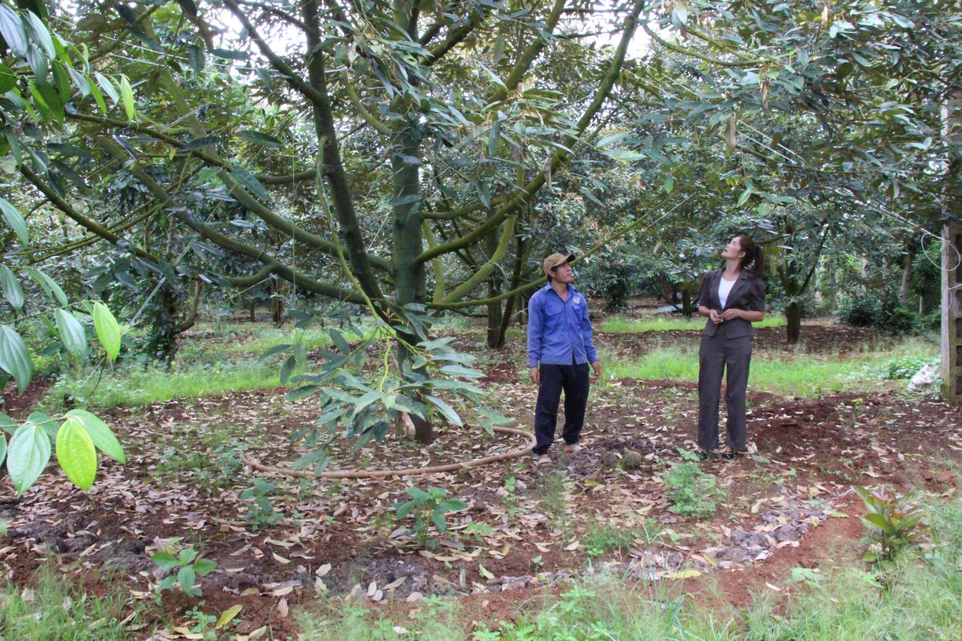 Vườn sầu riêng của một hộ dân ở xã Ea Kênh được đầu tư theo hướng bền vững. |
