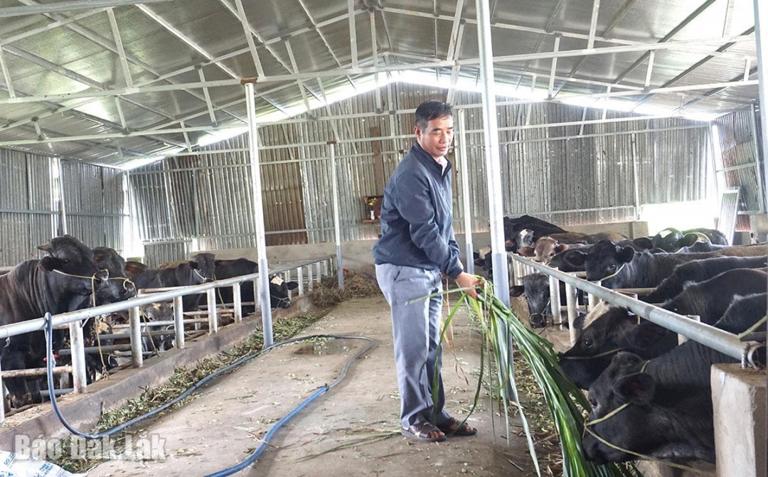 | Mô hình nuôi bò nhốt ở xã Hòa Sơn mang lại hiệu quả kinh tế cao cho người dân. |