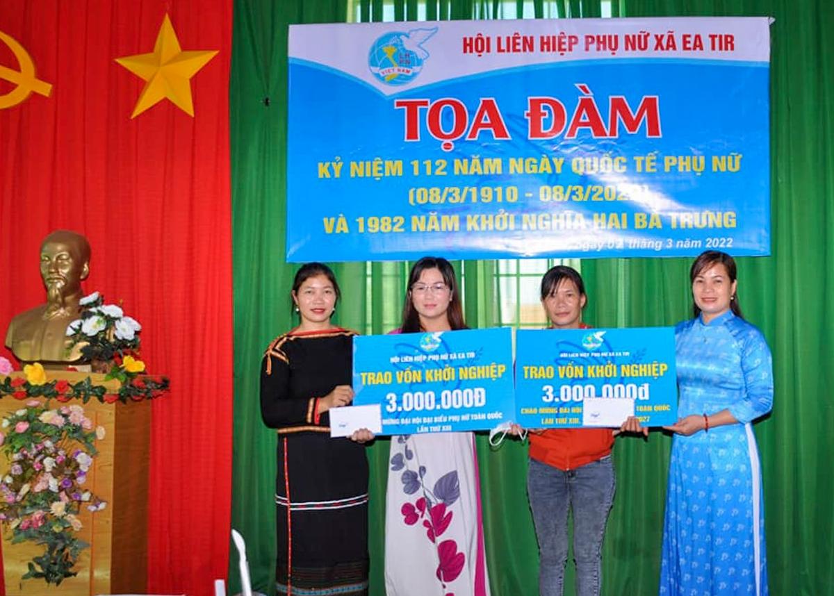 Hội Liên hiệp Phụ nữ xã Ea Tir trao vốn khởi nghiệp cho hội viên. |