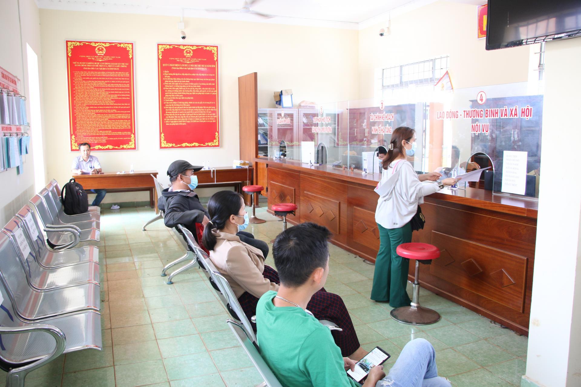 Người dân đến Bộ phận một cửa UBND huyện Ea H'leo giao dịch. |