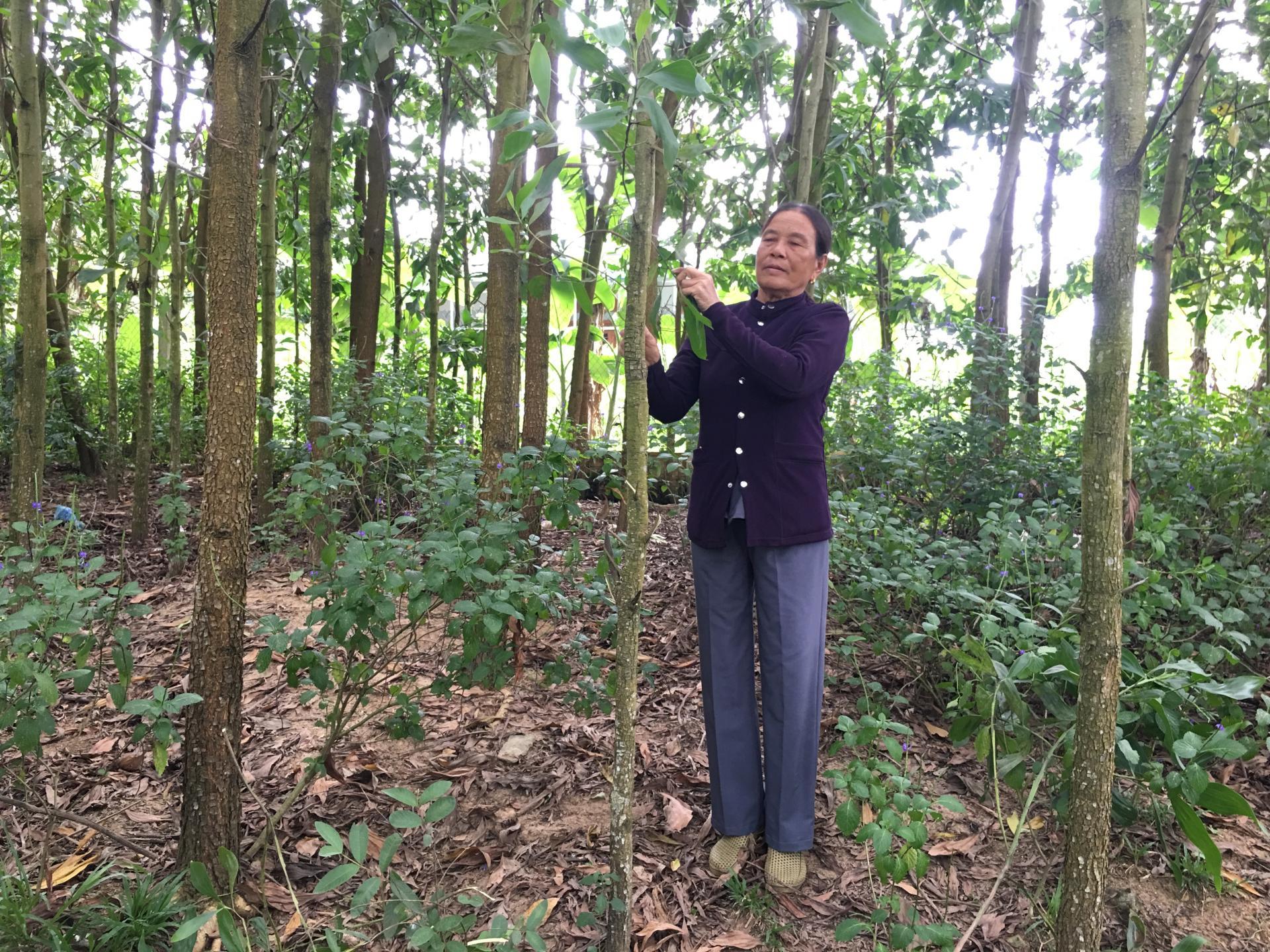 Bà Vinh chăm sóc vườn keo của gia đình. |
