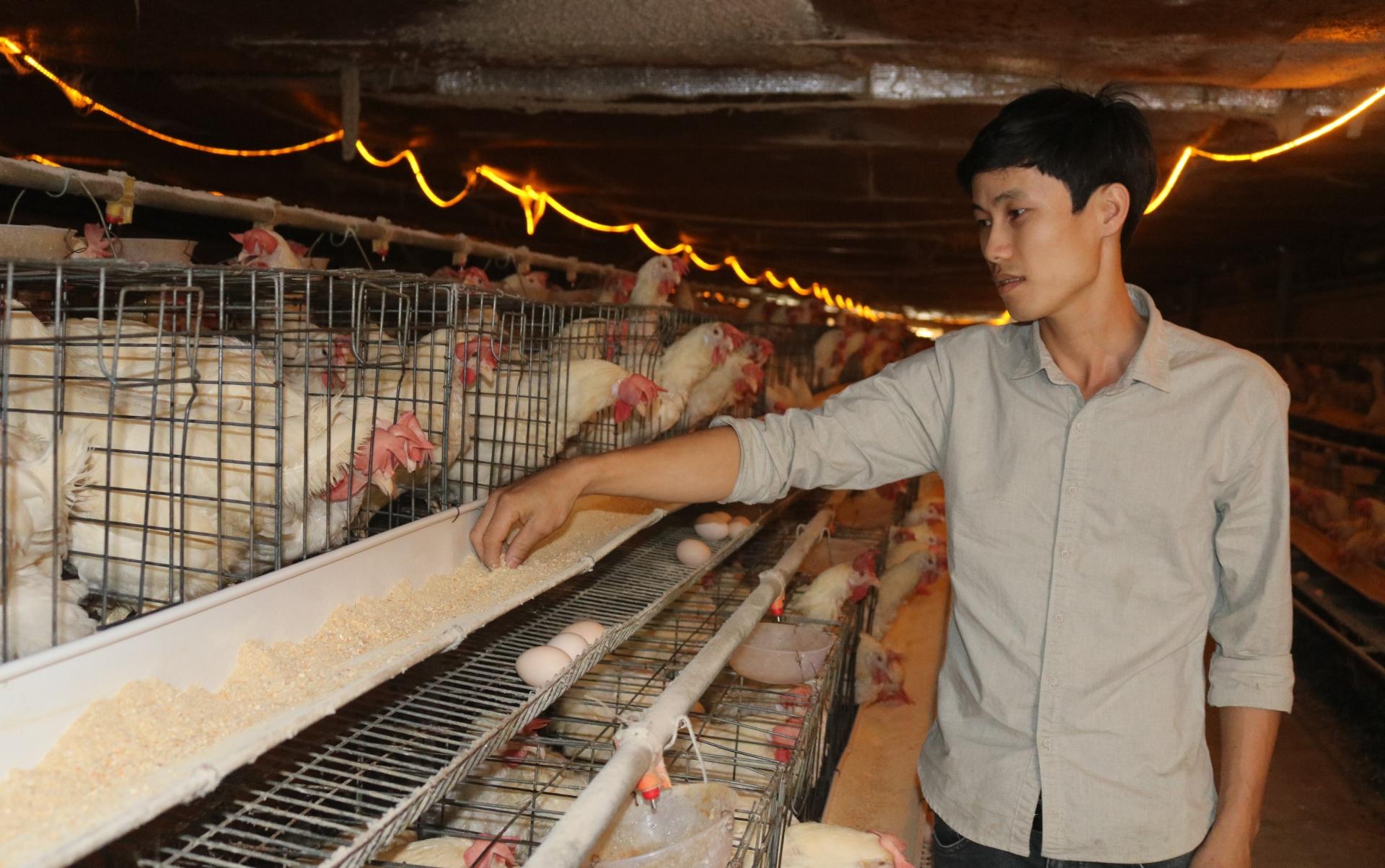 Từ tháng 9/2020 đến tháng 12/2020, anh Điện đã tiến hành phối trộn chế phẩm thảo dược vào thức ăn trên đàn gà đẻ trứng 160 con giống Ai Cập trắng của gia đình. Chế phẩm thảo dược được hòa tan vào nước với tỷ lệ 1 g/10 ml nước rồi phun đều lên thức ăn và để khô ngoài không khí, sau đó mới cho gà ăn. Qua quá trình chăn nuôi cho thấy, khi bổ sung tannin ở mức 600 g/tấn thức ăn trên đàn gà đẻ trứng từ 21 - 24 tuần tuổi sẽ làm tăng tỷ lệ đẻ, giảm tiêu tốn thức ăn và nâng cao chất lượng cho sản phẩm trứng (tăng tỷ lệ lòng đỏ, giảm lòng trắng).