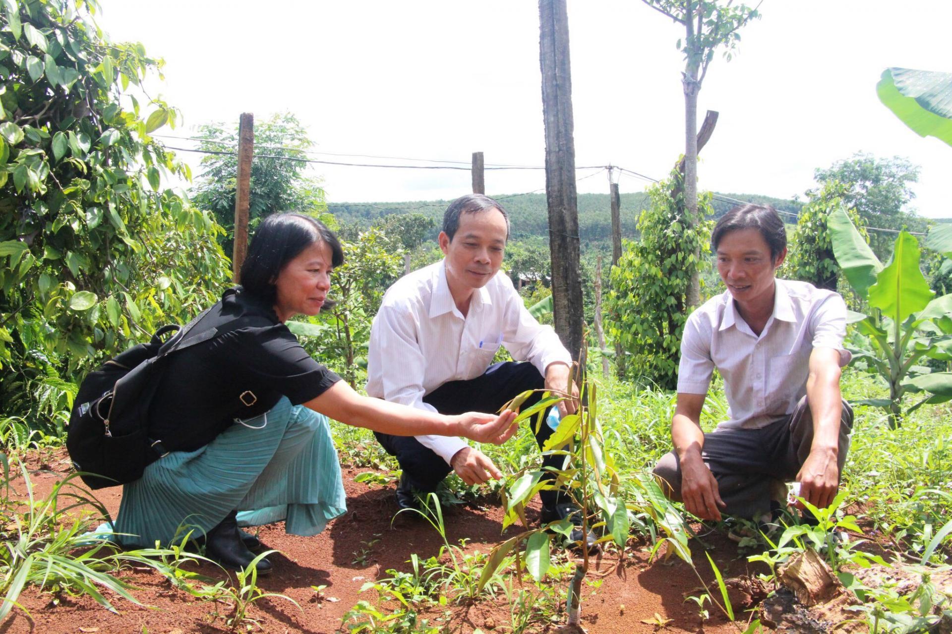 Cán bộ Hội Nông dân tỉnh tham quan mô hình sản xuất của nông dân xã Ea Tir, huyện Ea H'leo. |