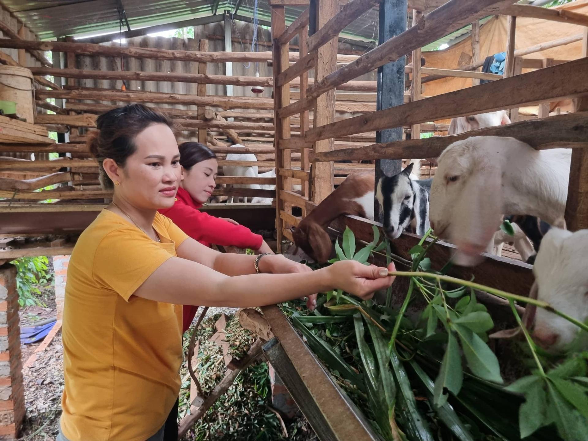 Đơn cử như chị Bùi Thị Thủy (ở thôn Thác Đá), khi tham gia mô hình Tổ phụ nữ tiết kiệm xoay vòng vốn của thôn đã được Chi hội cho vay 50 triệu đồng để phát triển kinh tế. Từ nguồn vốn này, chị đã đầu tư xây dựng chuồng trại, mua được 6 con dê giống Boer về nuôi. Nhờ sự tư vấn, hỗ trợ kiến thức chăn nuôi của Hội LHPN xã nên việc chăn nuôi của gia đình chị Thủy rất thuận lợi, đàn dê phát triển nhanh. Hiện nay đàn dê của gia đình chị đã lên đến 23 con, trong đó có 14 con dê mẹ. Vừa chăm sóc 1 ha cà phê xen hồ tiêu kết hợp với việc chăn nuôi dê nên kinh tế gia đình chị Thủy hiện nay đã ổn định hơn.