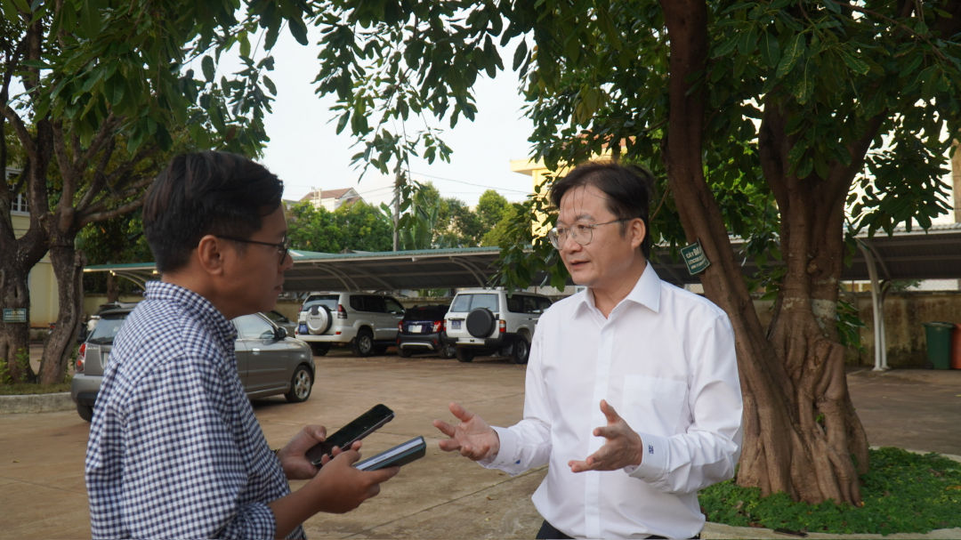 Ông Nguyễn Hoài Dương, Giám đốc Sở NN-PTNT đang trao đổi với phóng viên về vấn đề cà phê không gây mất rừng. |