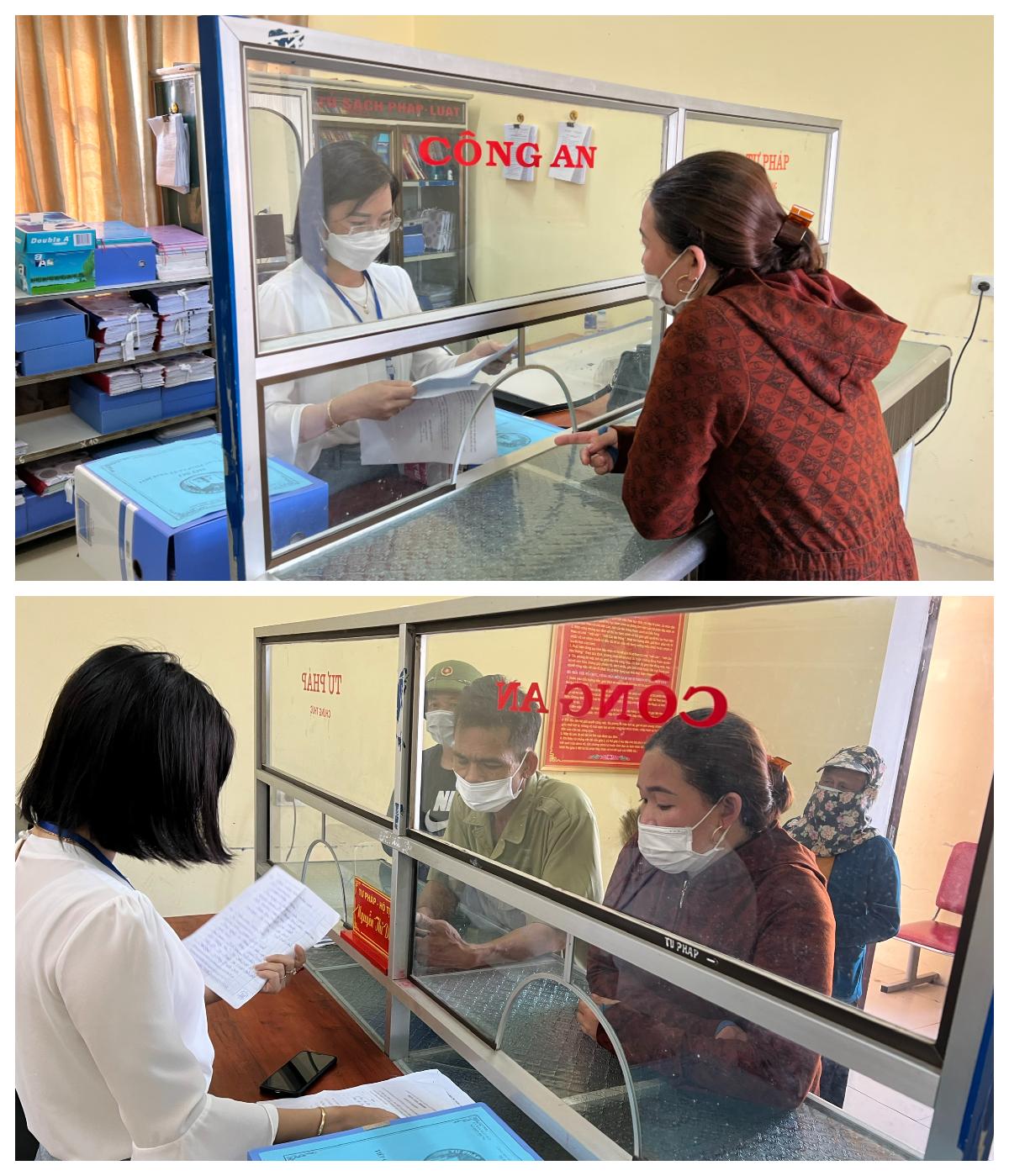 Người dân trao đổi với cán bộ bộ phận một cửa xã Diễn Kỷ, Diễn Châu. Ảnh: GHTheo ông Trần Ngọc Đoàn - cán bộ tư pháp xã Diễn Kỷ cho biết: Mặc dù bị ảnh hưởng bởi dịch Covid-19 nhưng xã vẫn triển khai nhiều hoạt động tuyên truyền pháp luật trên hệ thống loa truyền thanh với 719 lượt lên sóng; tổ chức 5 hội nghị tuyên truyền trực tiếp với hơn 1.000 người tham gia; phát động 3 cuộc thi trực tuyến tìm hiểu pháp luật về bầu cử, Luật Phòng, chống tham nhũng và Luật Cảnh sát biển; in cấp phát 5.000 tờ rơi nội dung tuyên truyền về các quy định xử phạt trong phòng, chống Covid-19, phòng, chống pháo nổ. Bên cạnh đó, UBND xã Diễn Kỷ đã chỉ đạo toàn hệ thống chính trị tích cực ứng dụng CNTT để đẩy mạnh công tác tuyên truyền, phổ biến pháp luật trên mạng xã hội và qua các trang fanpage của tổ chức, đoàn thể.