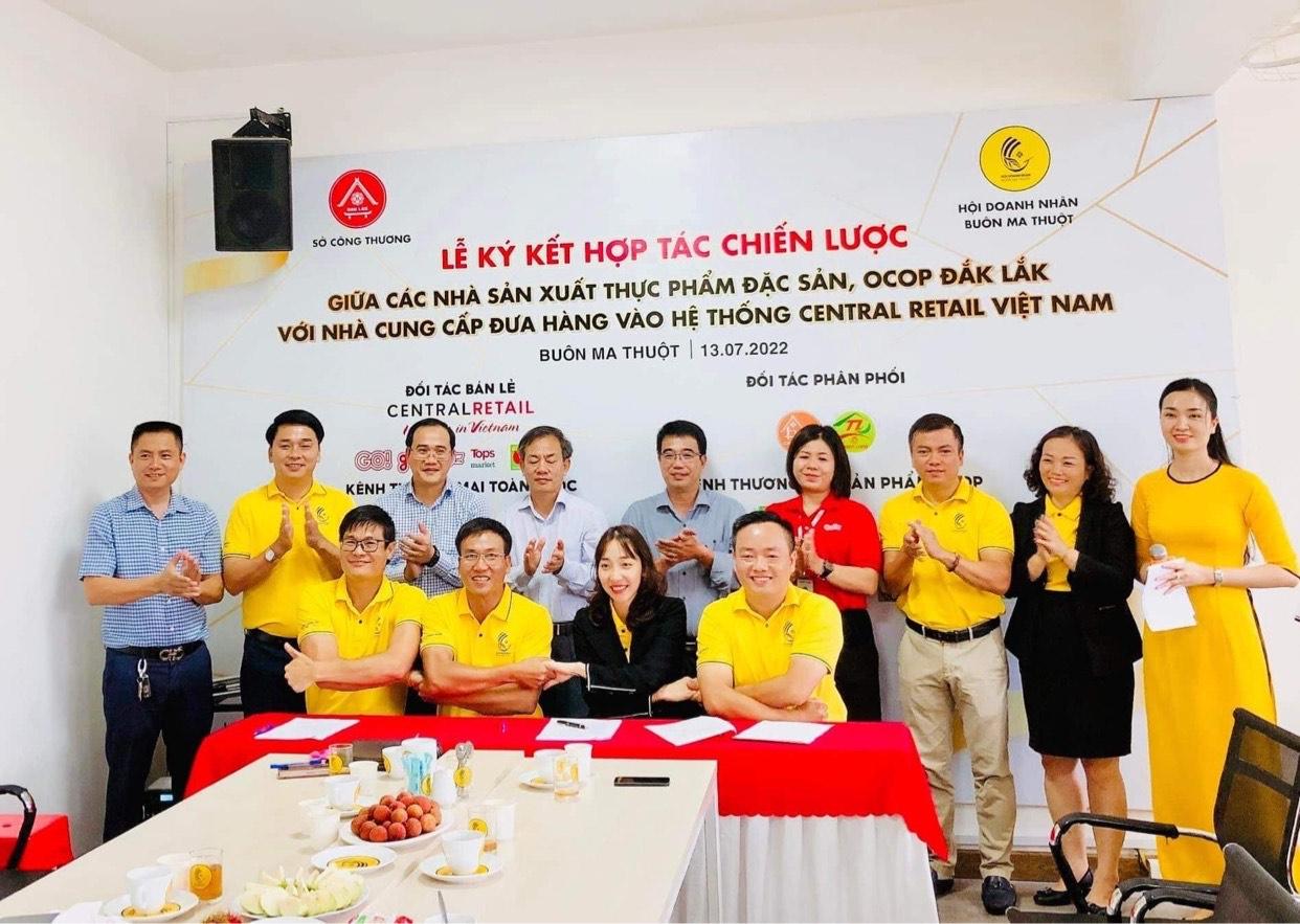 Trung tuần tháng 7 vừa qua, Sở Công Thương đã phối hợp với Hội Doanh nhân TP. Buôn Ma Thuột tổ chức Lễ ký kết hợp tác chiến lược giữa nhà sản xuất thực phẩm đặc sản, OCOP Đắk Lắk với nhà phân phối đưa hàng vào hệ thống siêu thị của Tập đoàn Central Retail (sở hữu các chuỗi siêu thị GO, Mini go!, TopsMarket, LanChi). Đây là tín hiệu tích cực trong công tác phối hợp giữa cơ quan quản lý nhà nước, DN sản xuất và nhà phân phối, đóng vai trò quan trọng để tìm lối ra bền vững cho nông sản thế mạnh của tỉnh.