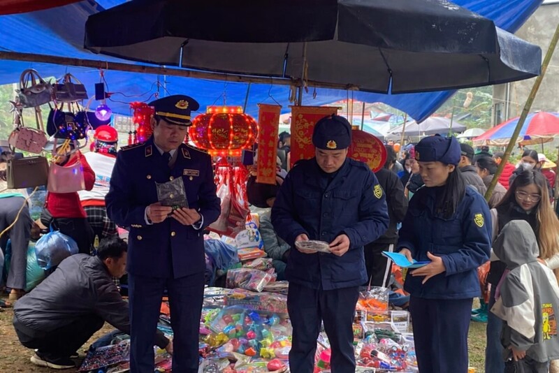 Lực lượng Quản lý thị trường tỉnh Thái Nguyên giám sát hoạt động kinh doanh tại các chợ phiên trên địa bàn tỉnh.
