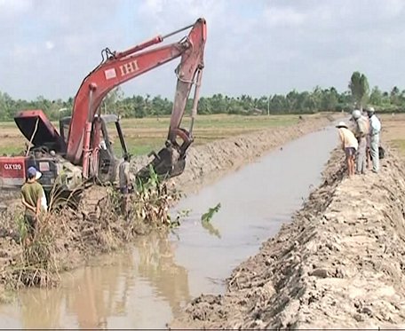 | Khơi thông kênh, mương đưa lũ đầu mùa vào đồng. |