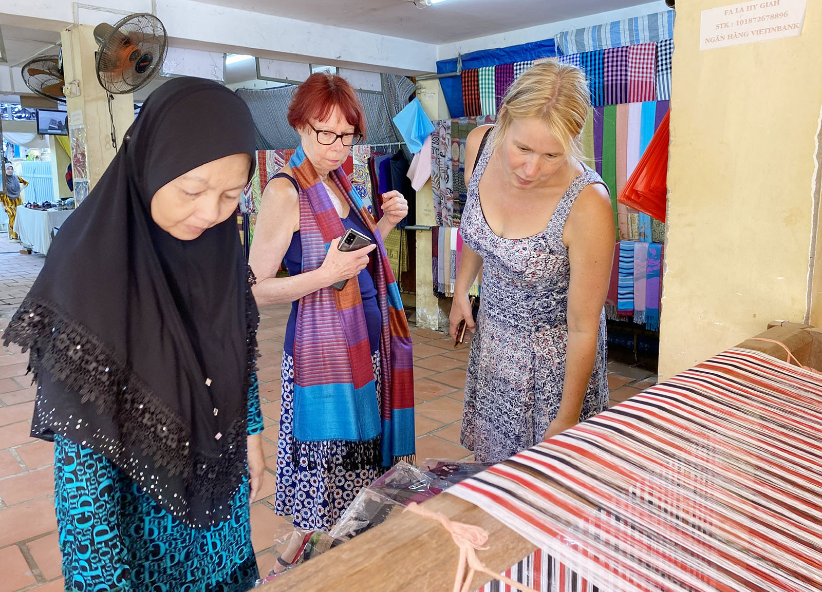 | Trong hành trình khám phá ngã ba sông Châu Đốc, du khách còn được tham quan nghề dệt thổ cẩm tại làng Chăm Đa Phước, làng Chăm Châu Phong. |