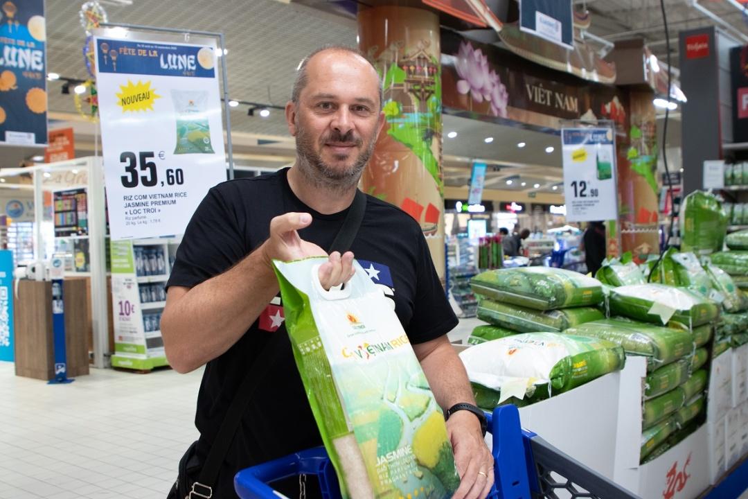 Sản phẩm Cơm ViệtNam Rice được bày bán tại siêu thị Carrefour.