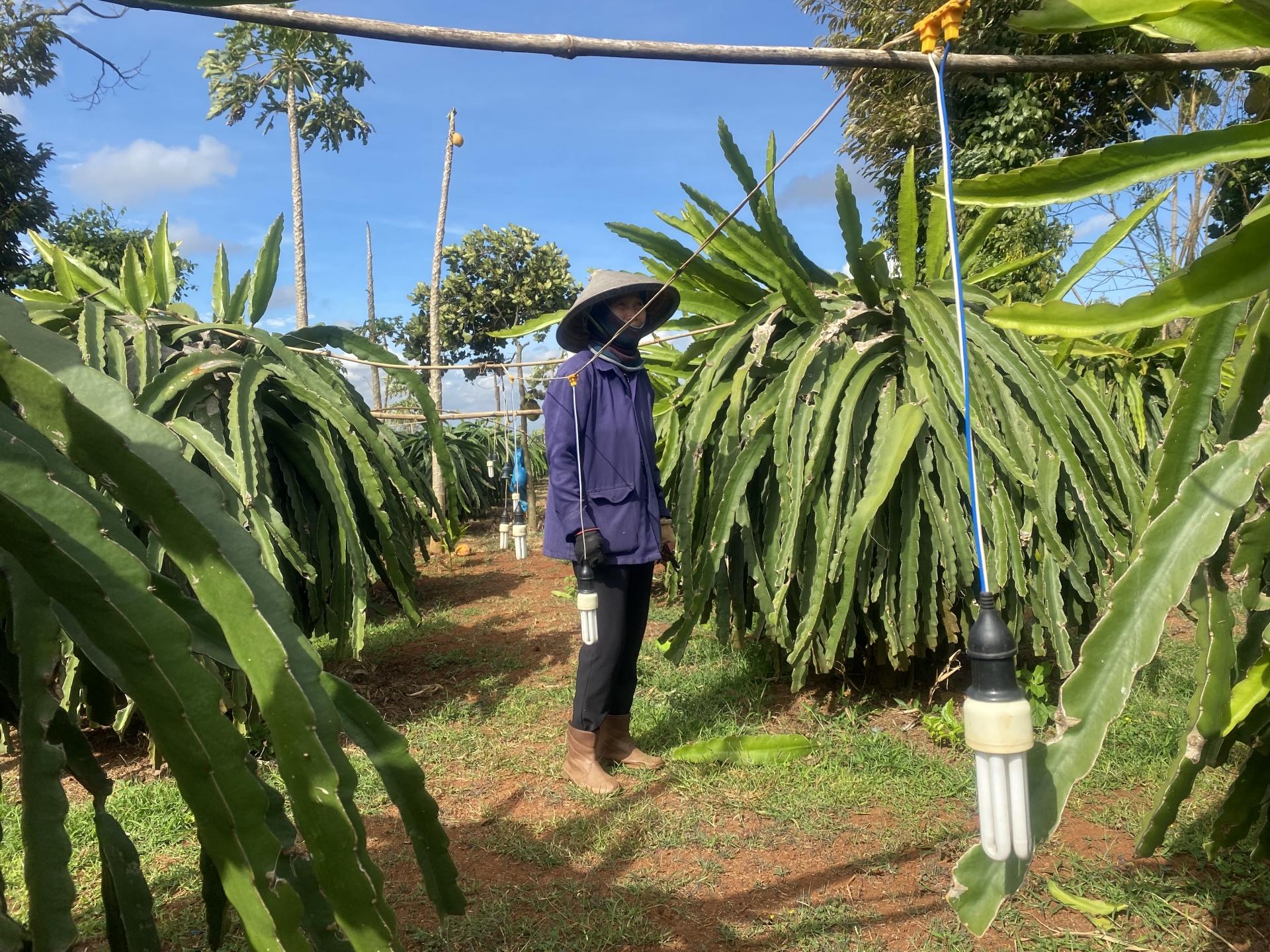 Người trồng thanh long cũng đã tiến hành cải tiến phương pháp kích thích cây ra hoa bằng bóng đèn sao cho mang lại hiệu quả tối ưu nhất.
