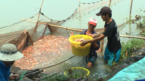 Ông Nguyễn Văn Nghĩa đang thu hoạch ao cá giống hơn 5 công ở xã Mỹ Thọ cho biết: “Sau 3 tháng nuôi, hiện thương lái mua cá loại 70 - 80 con/kg tại ao ương chỉ 20 ngàn đồng/kg, giảm từ 5 - 6 ngàn đồng/kg so với cách đây 3 tháng. Còn cá điêu hồng giống cỡ 150 - 200 con/kg ương trong ao giá từ 15 - 17 ngàn đồng/kg. Với chi phí đầu vào như hiện nay thì giá thành ương cá giống gần bằng với giá thị trường”.