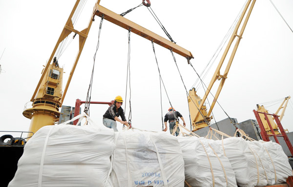 Xuất khẩu gạo tại Cảng Sài Gòn. Ảnh: T.H