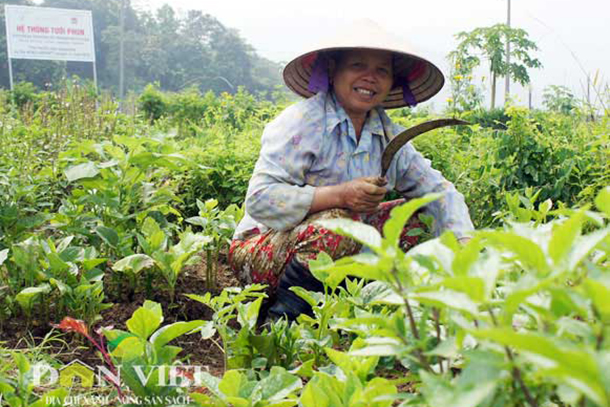10 giờ sáng, giữa cái nắng gắt của buổi sớm, bà Hà Thị Xiển, xóm Gừa, xã Cư Yên vẫn miệt mài làm cỏ cho những luống rau mồng tơi. Mỗi ngày, bà dành 2 – 3 giờ đều đặn làm cỏ, bừa đất, chăm sóc cho hơn 1 sào đất trồng rau hữu cơ của gia đình. “Mùa nào rau nấy, giờ tôi đang làm đất để chuẩn bị trồng cây vụ đông. Tôi vừa thu hoạch hết vụ rau muống, rau mồng tơi. Cứ xong việc đồng áng, lại ra vườn nhổ cỏ. Làm từ đầu này xong, cỏ đầu kia cũng mọc lại. Cứ làm liên tục quanh năm như vậy, toàn thủ công, bằng tay hết” – bà Xiển cho hay.