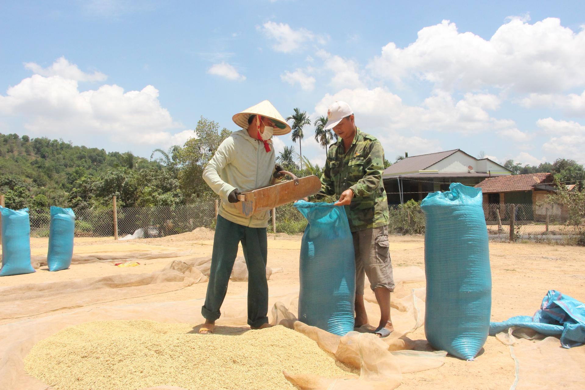 Nông dân huyện Lắk phơi sấy lúa sau thu hoạch. |