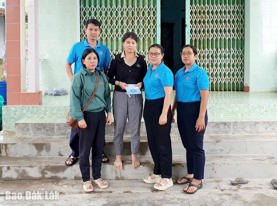 | Bảo hiểm xã hội cơ sở Sông Cầu tặng thẻ bảo hiểm y tế cho người dân có hoàn cảnh khó khăn ở phường Sông Cầu. |