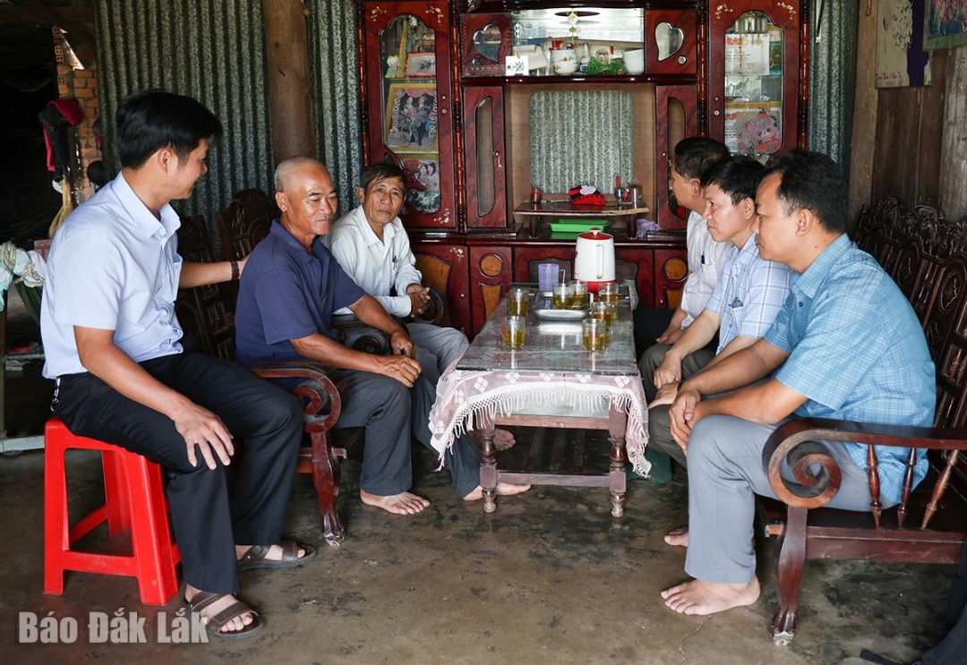 | Các đồng chí trong Ban Thường vụ Đảng ủy xã Ea Kly đến thăm hỏi một gia đình đặc biệt khó khăn tại thôn 7. |