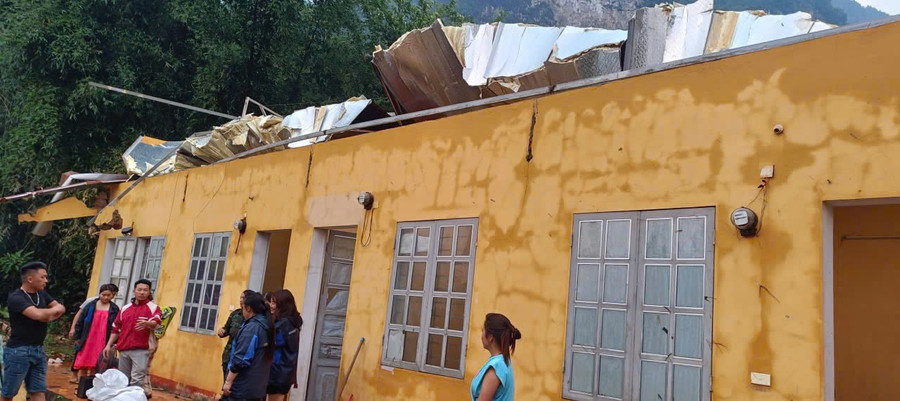 Dông lốc cũng làm tốc mái hoàn toàn nhà công vụ giáo viên tại 2 điểm trường gồm: Phân hiệu Mầm non Phùn Chư 3 và Trường PTDT Bán trú Tiểu học và THCS Tả Củ Tỷ 1.