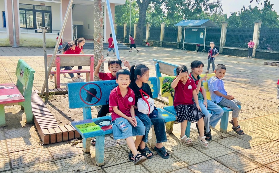 Học sinh vùng ngập vui mừng vì được học trực tiếp tại trường.