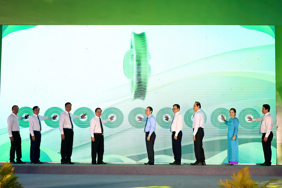 Lãnh đạo TP Cần Thơ thực hiện ghi thức khai mạc hội chợ.