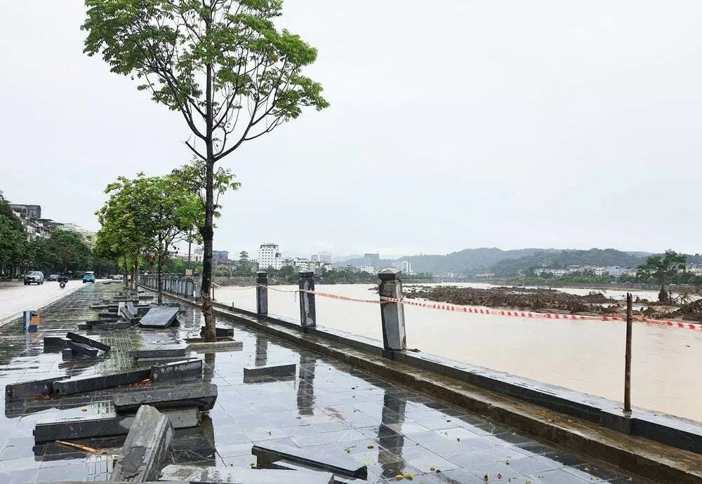 Lan can dọc bờ kè sông Hồng trên địa bàn Lào Cai bị hư hỏng. Ảnh: CTTĐTLC |