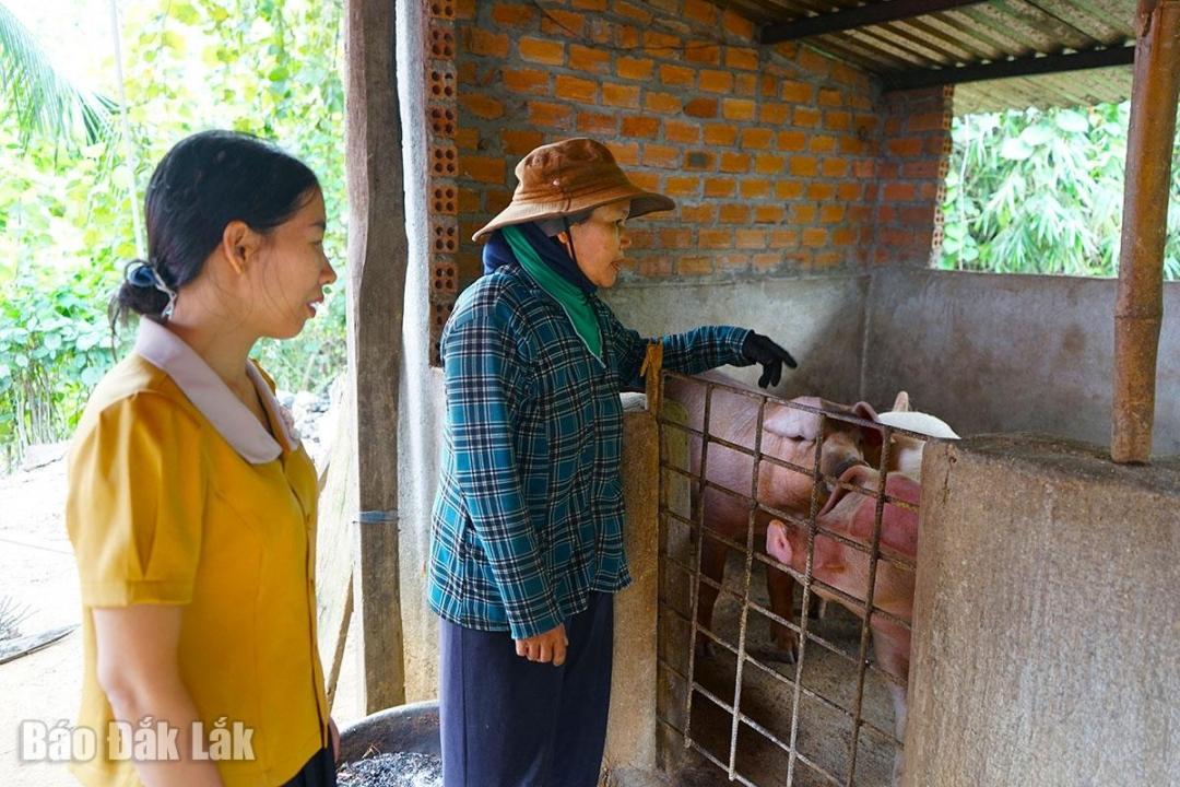 Tháng 6/2025, gia đình chị H Dưn Hmok (buôn Tría) được cấp 7 con heo lai. Từ đó, chị đã tìm thấy hướng đi vững chắc trong chăn nuôi. Trước đây, thu nhập của cả gia đình chị chủ yếu dựa vào một khoảnh đất rẫy nhỏ phía sau nhà và vài con heo thả rông, cuộc sống hết sức khó khăn. Đến khi được Nhà nước hỗ trợ heo, gia đình chị đã tích góp xây dựng chuồng để chăn nuôi bài bản hơn.