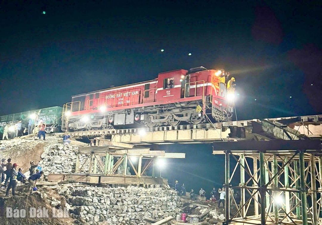 Song song với nỗ lực của ngành đường sắt, lực lượng quản lý đường bộ tại Đắk Lắk cũng tăng tốc triển khai khắc phục hư hỏng, sạt lở trên nhiều tuyến quốc lộ và tỉnh lộ.