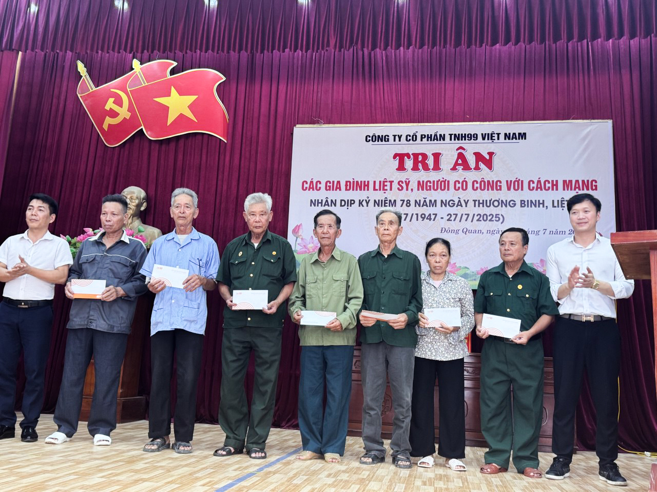 Tại buổi lễ, ông Phạm Hữu Hải – Phó Tổng Giám đốc Công ty Cổ phần TNH99 Việt Nam bày tỏ lời tri ân sâu sắc tới các thế hệ cha anh đã hy sinh xương máu vì nền độc lập của dân tộc và trao tặng 200 suất quà, mỗi suất quà trị giá 1.000.000 đồng. Tổng giá trị quà tặng là 200.000.000 đồng. Dù giá trị vật chất không quá lớn, nhưng mỗi phần quà là tấm lòng thành kính, là sự tri ân sâu sắc của Công ty Cổ phần TNH99 Việt Nam đối với những người đã cống hiến tuổi xuân, máu xương và cả những hy sinh thầm lặng cho độc lập, tự do của Tổ quốc.