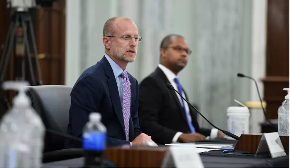 | Ông Brendan Carr trả lời câu hỏi trong phiên điều trần giám sát của Ủy ban Thương mại, Khoa học và Giao thông thuộc Thượng viện Mỹ đối với Ủy ban Truyền thông Liên bang (FCC) tại Washington, Mỹ. Ảnh: Reuters. |