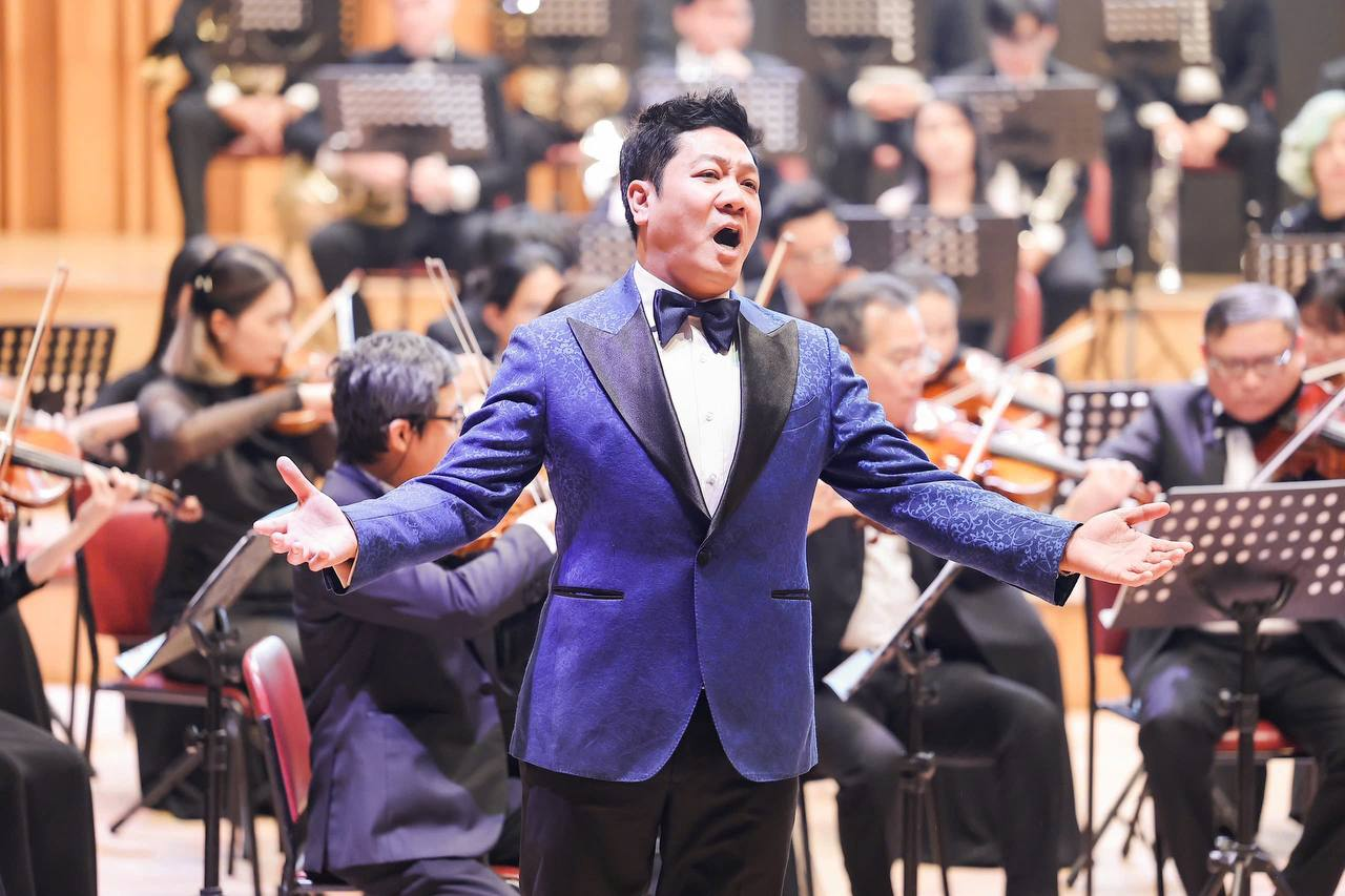 NSND Quốc Hưng (bên phải) và NSND Tạ Minh Tâm hòa giọng mashup hai ca khúc "Đất nước trọn niềm vui" và "Màu hoa đỏ" trong Lễ kỷ niệm, diễu binh, diễu hành 50 năm Ngày giải phóng miền Nam, thống nhất đất nước sáng ngày 30/4/2025.