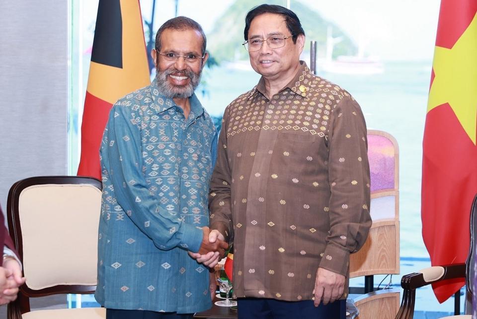 Thủ tướng Chính phủ Phạm Minh Chính gặp gỡ Thủ tướng Timor-Leste Taur Matan nhân dịp cùng dự Hội nghị cấp cao ASEAN 42 tại Labuan Bajo, Indonesia. Ảnh: VOV