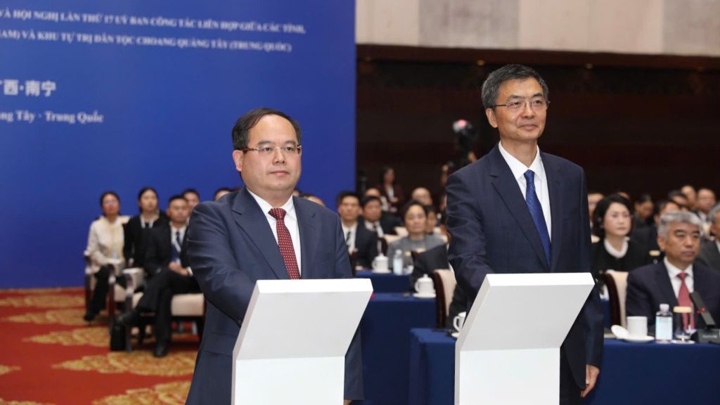 Đồng chí Quản Minh Cường, Ủy viên Trung ương Đảng Cộng sản Việt Nam, Bí thư Tỉnh ủy, Trưởng Đoàn ĐBQH tỉnh Quảng Ninh và đồng chí Trần Cương, Ủy viên Trung ương Đảng Cộng sản Trung Quốc, Bí thư Khu ủy, Chủ nhiệm Ủy ban Thường vụ Đại hội đại biểu nhân dân