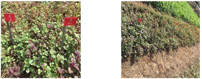Thí nghiệm được thực hiện trên 3 loại như rau cải ngọt, rau mồng tơi và rau dền, với diện tích mỗi ô là 0,5 m2 (Hình 6), bố trí theo kiểu khối ngẫu nhiên, không lặp lại với 10 công thức xử lý thuốc và 1 công thức đối chứng không xử lý thuốc.