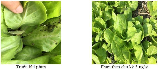 Hình 8: Rau xà lách trước và sau khi phun theo chu kỳ